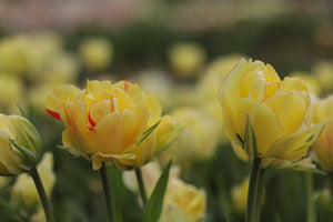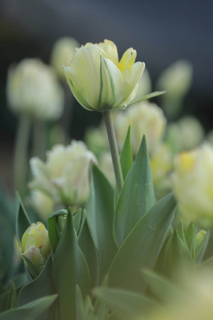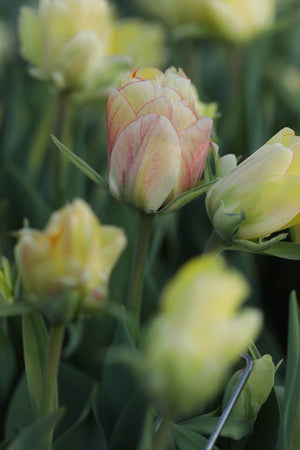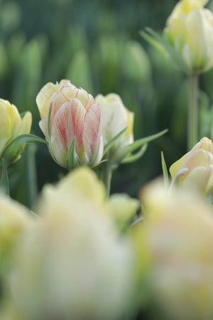 A buttery soft primrose yellow with blush striations throughout that will win over even the toughest yellow critic. One of the first varieties to bloom here on the farm with a gorgeous light scent.