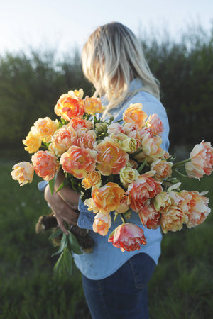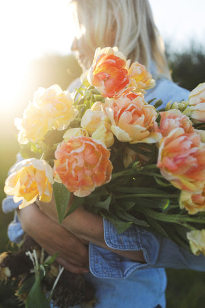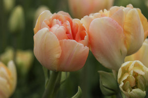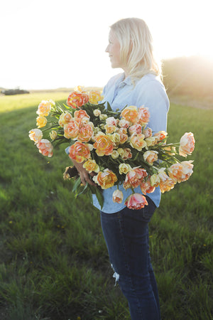 The softest, most elegant looking tulip in pastel shades of butter yellow, blush and peach. This one easily catches the eye and the heart and I truly believe no garden should be without these!