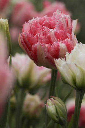 This tulip is a beautiful peony flowering variety but with fringed edges in the most gorgeous shades of raspberry & cream. Love this one!