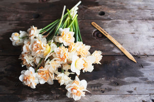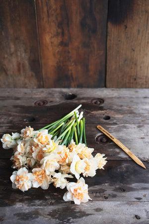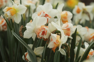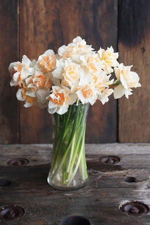 Peach & Apricot centres are tightly packed amongst creamy white blooms. Tall stems, absolutely regal in the garden. A must grow!