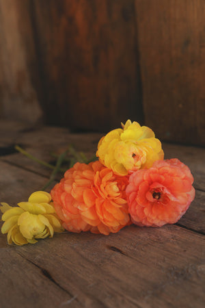 Gardens with mild winter temperatures (Zone 7 and above), can plant corms in the autumn and successfully overwintered outdoors with a form of protection such as a low tunnel or frost cloth. In colder areas (Zone 6 and below), ranunculus MUST be grown in a heated hoop house or planted out at the end of winter/early spring. If corms are exposed to temperatures below -5C, they will fail to thrive
