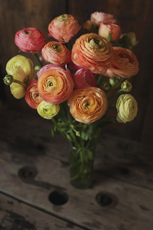 Gardens with mild winter temperatures (Zone 7 and above), corms can be planted in the autumn and successfully overwintered outdoors with protection such as a low tunnel or frost cloth. In colder areas (Zone 6 and below), ranunculus MUST be grown in a heated hoop house or planted out at the end of winter/early spring. If corms are exposed to temperatures below -5C, they will fail to thrive