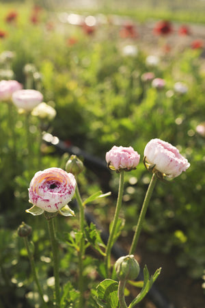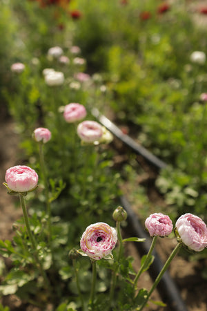 Gardens with mild winter temperatures (Zone 7 and above), corms can be planted in the autumn and successfully overwintered outdoors with protection such as a low tunnel or frost cloth. In colder areas (Zone 6 and below), ranunculus MUST be grown in a heated hoop house or planted out at the end of winter/early spring. If corms are exposed to temperatures below -5C, they will fail to thrive
